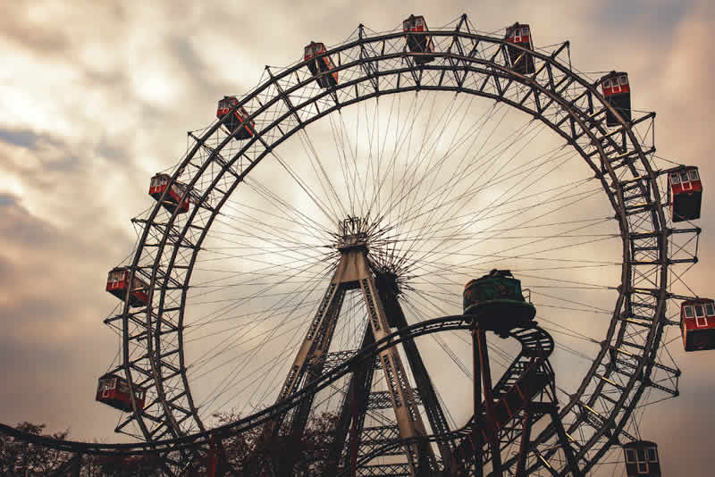 Las cabinas rojas cerradas de la Wiener Riesenrad son amplias y tienen capacidad para varias personas. Pero si buscas un poco de adrenalina extra, te recomendamos comprar una entrada para el “Andén 9”, que te permitirá subirte a una estructura de acero expuesta mientras estás de pie sobre un suelo de cristal.
